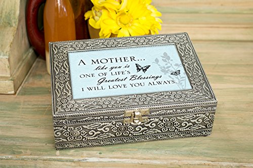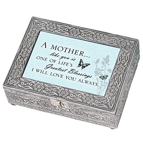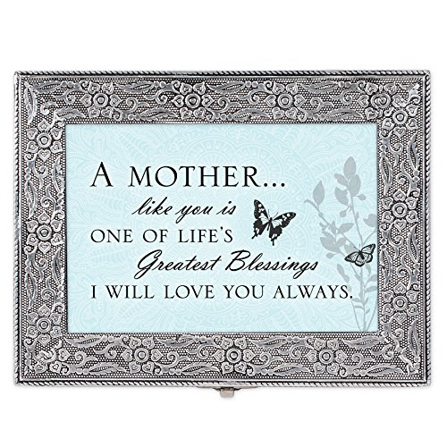 Mother Lifes Greatest Blessing Silver Stamped Metal Jewelry Music Box Plays Tune Amazing Grace
