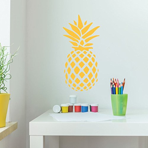 -. Brand : CustomVinylDecor -. Color : Black White Brown Beige Charcoal Gray Gray Light Gray Metallic Silver Metallic Gold Dark Red Red Pink Soft Pink Orange Yellow Dark Green Green Lime Green Mint Turquoise Dark Blue (Navy) Brilliant Blue Powder Blue Purple Lilac -. IsAdultProduct : 0 -. NumberOfItems : 1 -. ProductGroup : Guild Product -. ProductTypeName : GUILD_HOME -. Title : Pineapple Decor - Vinyl Wall Decal With Hawaiian Pineapple Design - Pineapple Decor - Pineapple Gifts, Teen Girl Bedroom, Kitchen, Den, Livingroom or Playroom Art Decoration