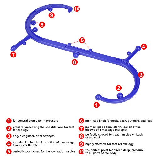 Studio : SOKISS Publisher : SOKISS Binding : Health and Beauty Product Description Self-massage is a patented self-massage tool to give you the benefits of controlled pressure massages, myofascial release, and trigger point therapy without ever visiting a physical therapist, chiropractor How Can The Sokiss Back Hook Massager Benefit You? How many times daily do you suffer from some sort of strain related pain? What do you do when you need to massage or to soothe your tired muscles but you can't reach that problem area, or simply can't generate enough pressure for effective relief. The only thing left to do is pester a loved one or start getting creative with furniture in ways you never knew existed The shape and design of the Back Hook ensures that you are able to reach any part of your body without much effort, allowing you to manually apply direct pressure to knots and tense muscles in a similar manner to a deep tissue massage. The Trigger Point Massage Tool features 11 Therapy Knobs to effectively treat knotted back and shoulder muscles allowing by allowing you to dig into sore, tender muscles to alleviate pain and achieve trigger point release ensuring the muscles heal faster. Feature: - Alleviate muscle knots of trigger points