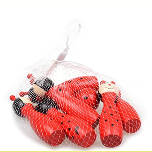 size:11.5*2.8*4cm Material: wood Contain:6 bottles 2 balls Suitable for age: over 1 years of age Lovely animal models. Colourful coloring. Deeply loved by the babies.