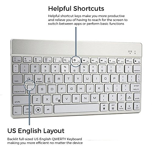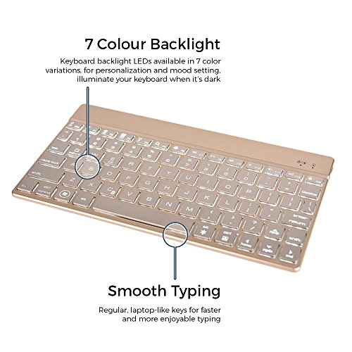 -. Feature : Backlit full-sized US English QWERTY Keyboard making you more efficient no matter the device. / Aesthetic design available in 4 colors with aluminium undercarriage for enduring sturdiness and durability. / Regular, laptop-like keys and helpful shortcut keys make you more productive and relieve you of having to reach for the screen to switch between apps or perform basic functions. / Keyboard backlight LEDs available in 7 color variations, for personalization and mood setting, illuminate your keyboard when it's dark. / All stock shipped from USA. Next day delivery available with Express shipping (excl. remote areas).
