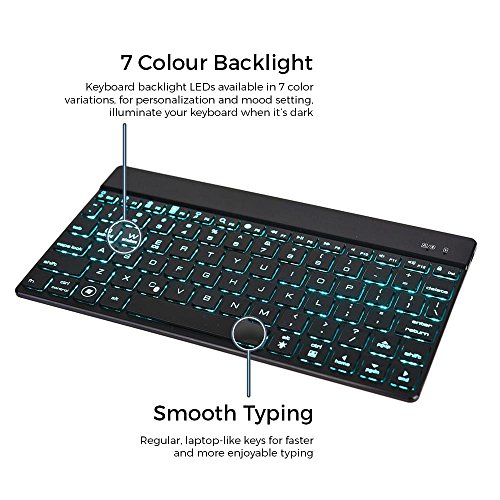 -. Title : Universal 7-12'' Wireless Keyboard, COOPER AURORA 7-Color Backlit LED Wireless Bluetooth QWERTY Keyboard with Rechargeable Battery for iOS, Android, Windows & Mac (Ultra Light & Slim)