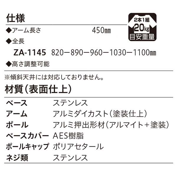 ●材質:ベース部:ステンレス アーム部:アルミダイカスト