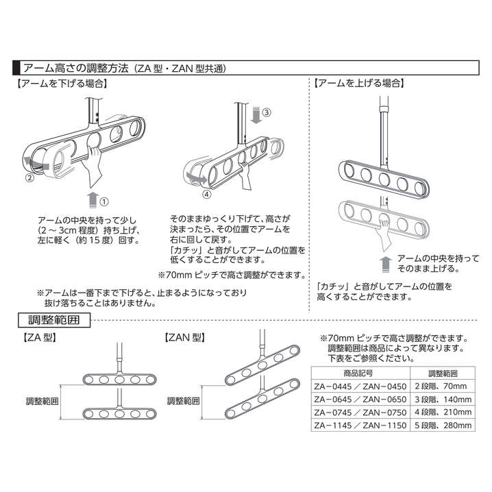 ●「ワンタッチ高さ調整」(ZA/ZAN型)