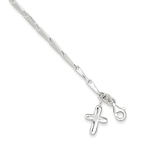 -. Title : .925 Sterling Silver 3.00MM Polished Cross On Fancy Link Anklet Bracelet, Available in 9 & 10 Inches