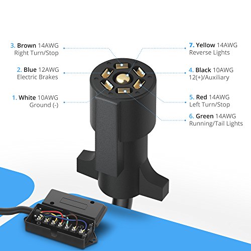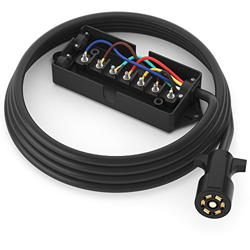 Pwr+ 6 Ft Long 7 Way Wire Harness Light Plug Inline Trailer Cord with 7-Gang Junction Box