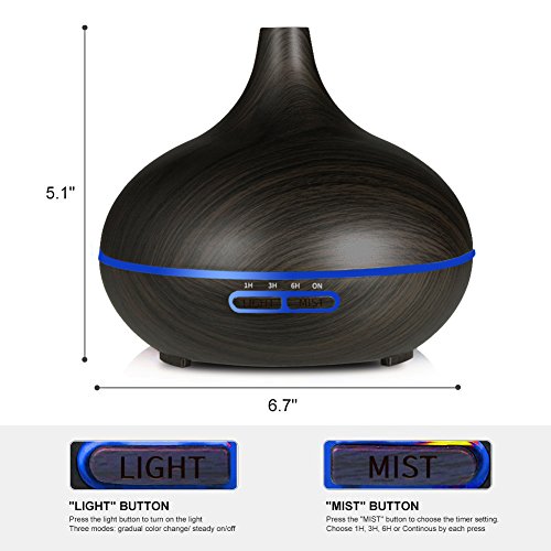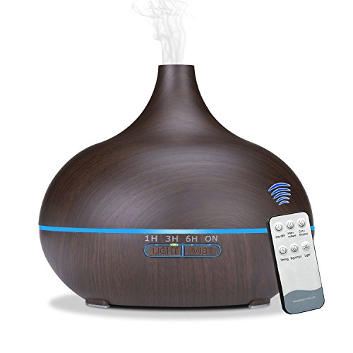 Sekway Remote Control Essential Oil Diffuser - 550 mL Wood Grain Ultrasonic Aroma Cool Mist Humidifier with 7 Color Light Changing and 4 Timer Settings for Office Home Bedroom Baby Room