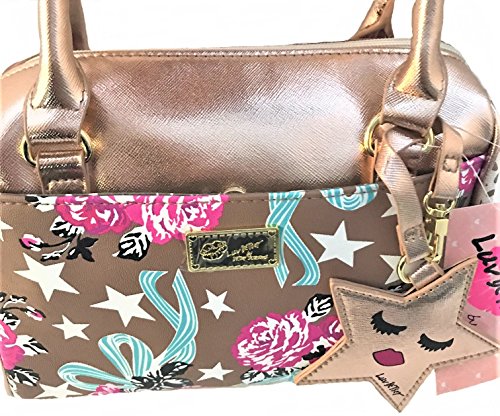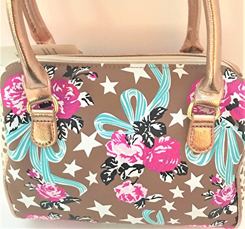 -. Title : Luv Betsey Crossbody Mini-Barrel Satchel Purse Rose Gold Base / Roses & Stars P.R.Int