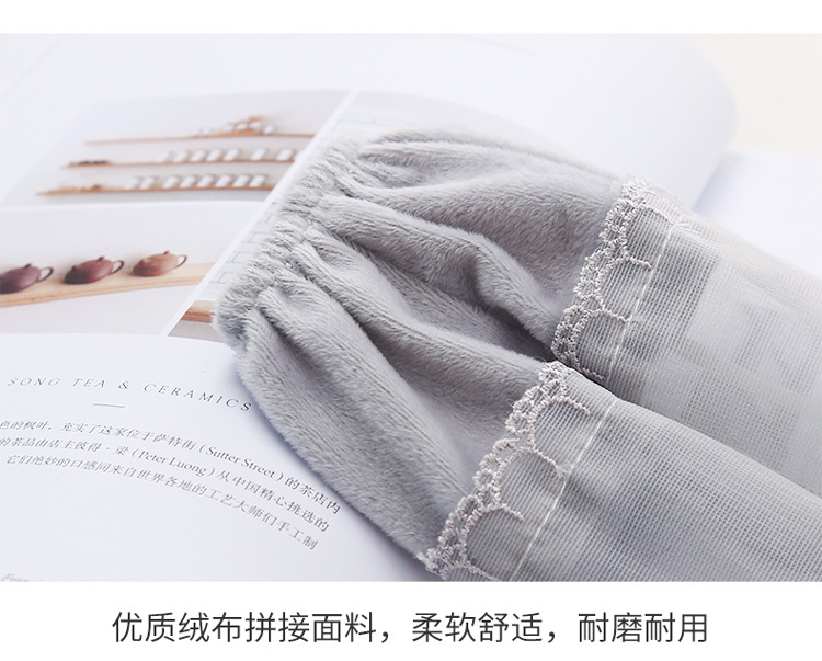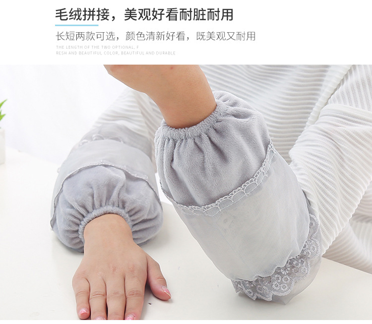 介绍:我们的套袖以绒布+蕾丝拼接制作,松紧适中,佩戴的时候
