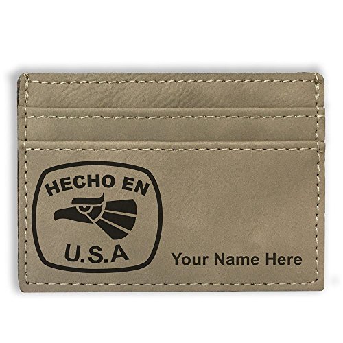 -. Binding : Apparel -. Brand : SkunkWerkz -. ClothingSize : Medium -. Color : Light Brown -. Department : mens -. EAN : 0654975839624 -. Feature : The Money Clip Wallet is laser engraved with the image that you see in the photo. / Your name or personalized message will be engraved on the wallet for free. / Synthetic leather construction. Includes space for 3 credit cards. / You may have one line of engraved text - 20 characters maximum. / Click the "Customize Now" button to begin customizing your wallet. -. ProductGroup : Apparel -. ProductTypeName : ACCESSORY -. Size : Medium -. Title : Money Clip Wallet - Hecho en USA - Personalized Engraving Included (Light Brown) -. UPC : 654975839624