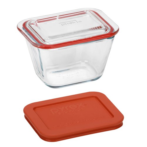Product DescriptionPyrex 1.9 cup bake, serve and store includes 1-each 1.9 cup storage vessel with glass and red plastic cover0