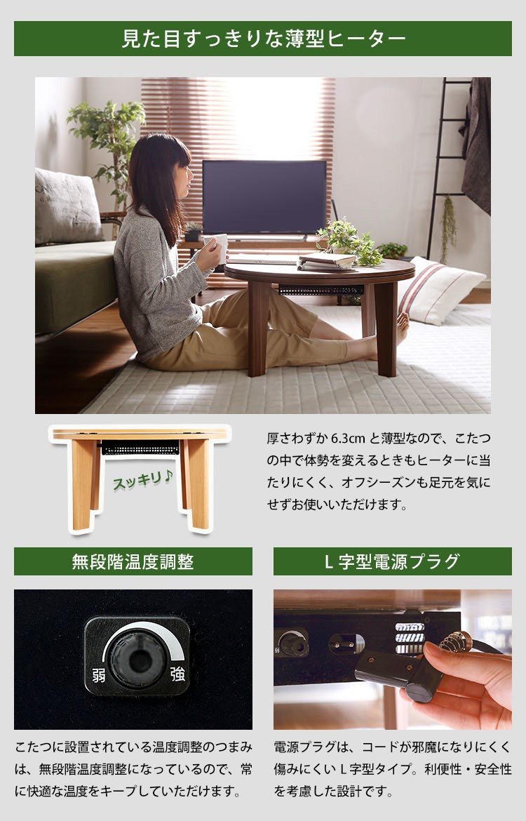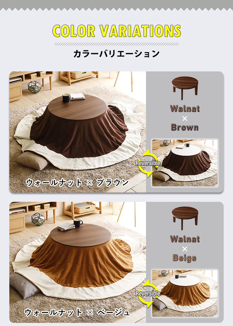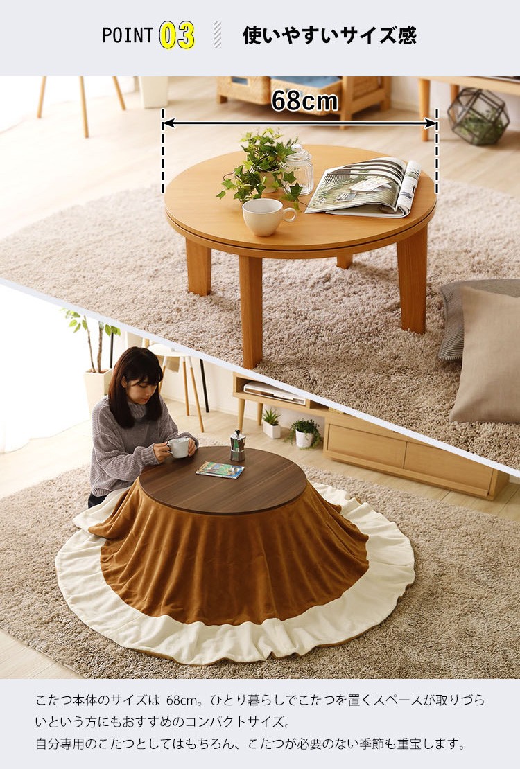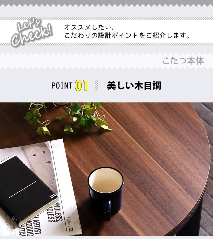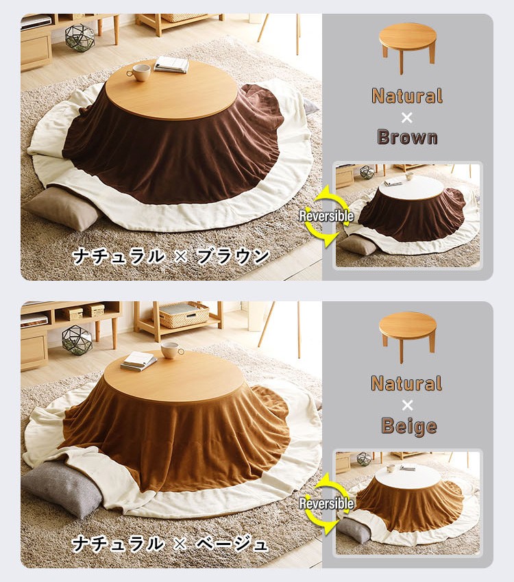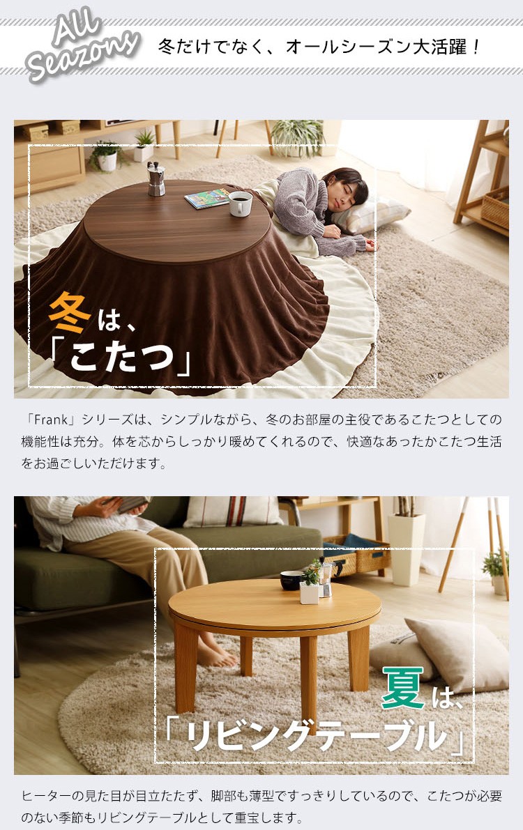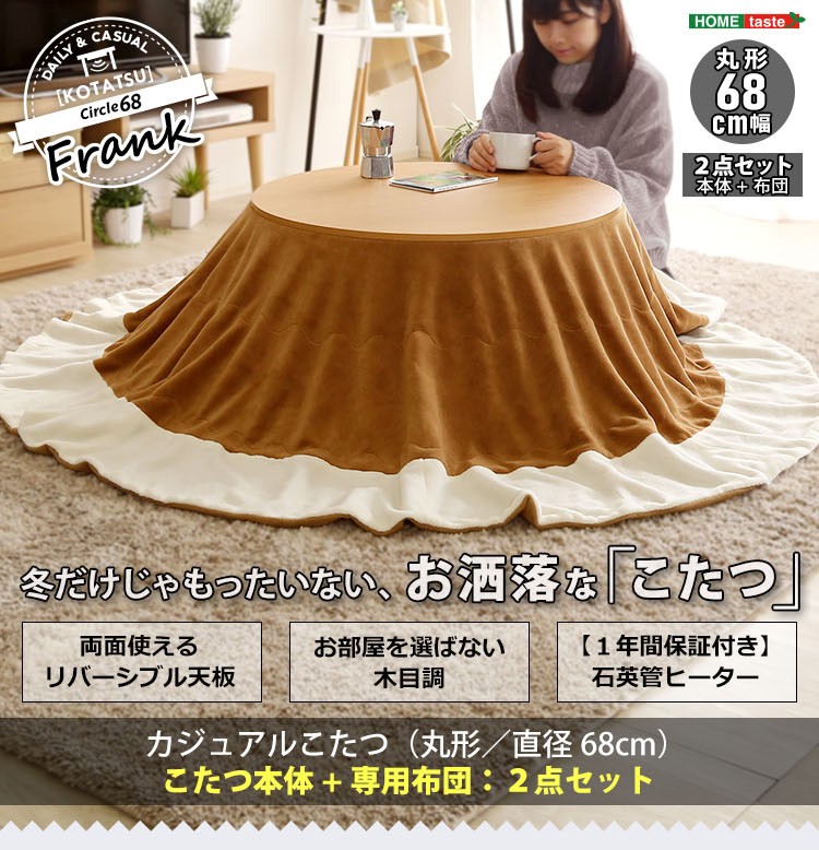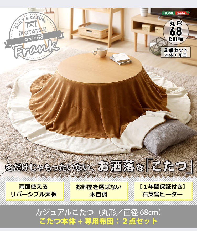 木目調 カジュアル リバーシブル こたつ 68cm幅 丸型 こたつ布団セット SET 【Frank-フランク-】シリーズ [CIRCLE 68]