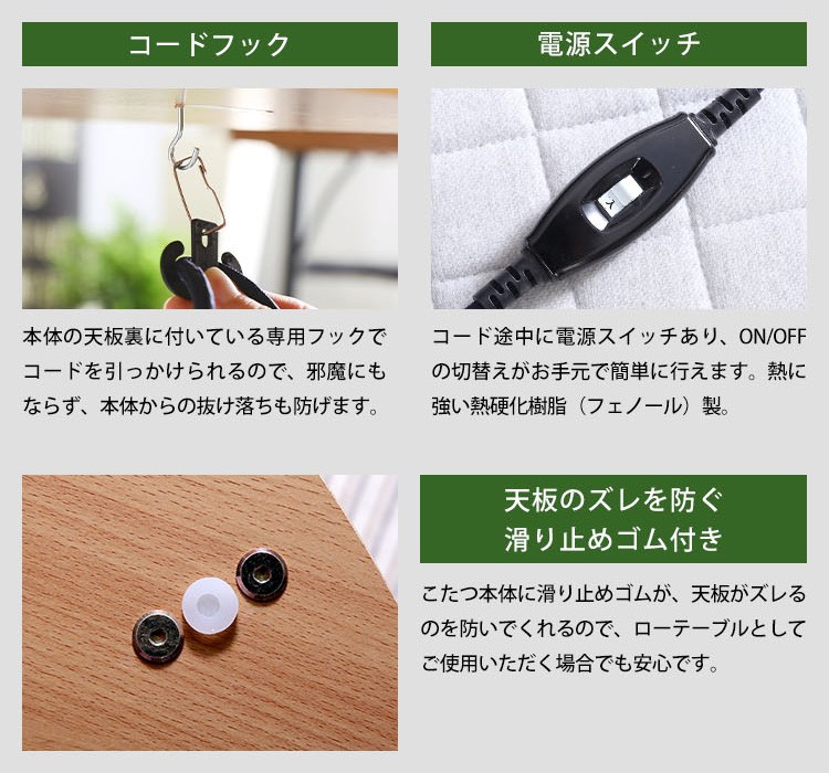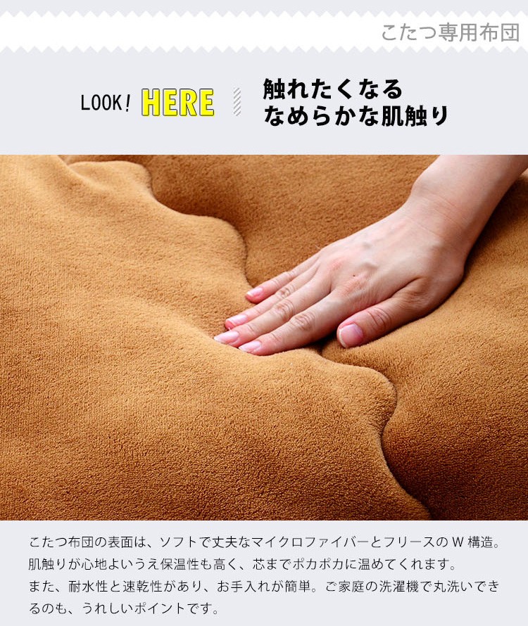 こたつ布団:側生地:表地、裏地:ポリエステル100% 詰め綿ナシ