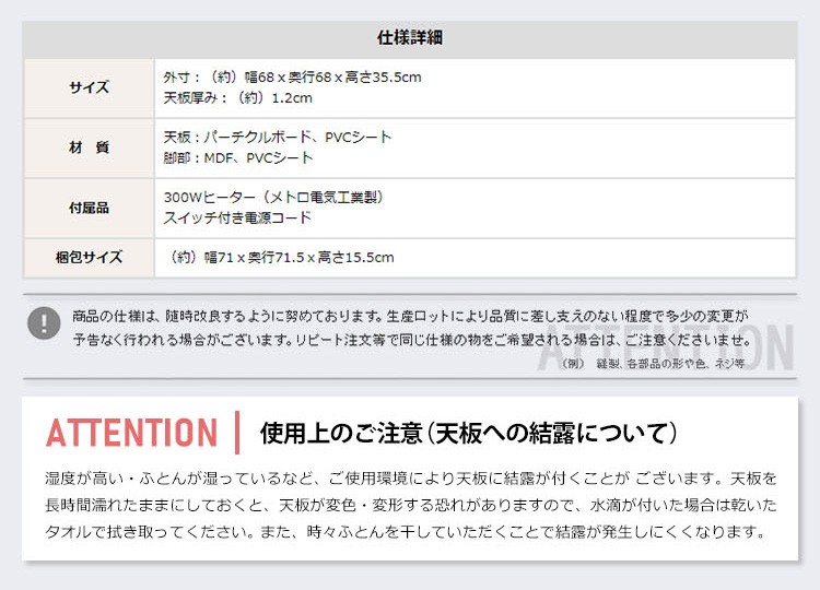 こたつテーブル:幅68x高さ35.5cm