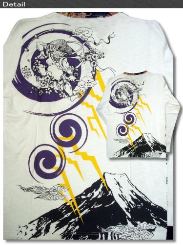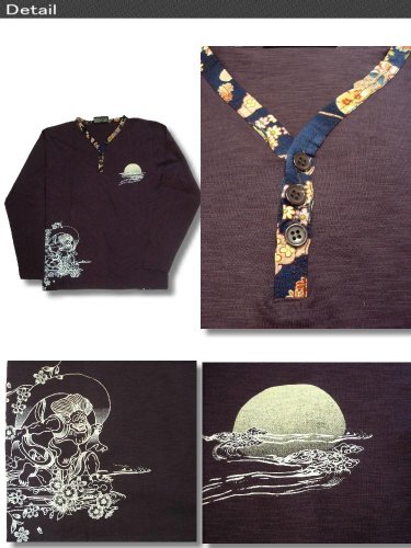-. Title : 是空(ZEKU) 和風 和柄 風神 雷神柄 ヘンリーネック 刺繍 プリント メンズ ロンT 長袖 ロング Tシャツ bia901