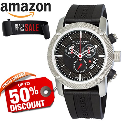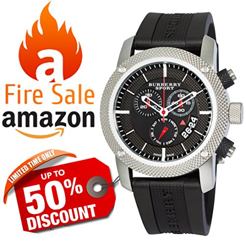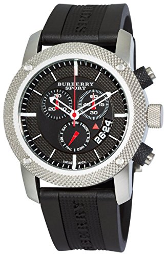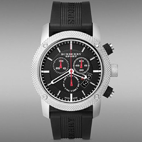 Studio : Burberry Publisher : Burberry Binding : Watch Product Description Burberry is a British luxury fashion house, manufacturing clothing, fragrance, and fashion accessories. Its distinctive tartan pattern, a type of plaid pattern, has become one of its most widely mimicked trademarks. Burberry was founded in 1856 by 21-year-old Thomas Burberry. Stainless steel case, black dial, date at the 4 o'clock position, day subdial at the 6 o'clock position, chronograph features (minutes, and seconds), stick indices, black rubber strap, pin buckle, water resistant to 330 feet. 0
