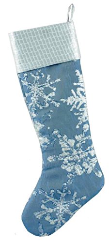 24 inch Winter Blue Snowflake Christmas Stocking with Silver Tone Cuff