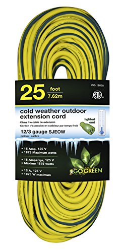 GoGreen Power GG-18025 12/3 25' SJEOW Cold Weather Extension Cord, Yellow - UL Approved