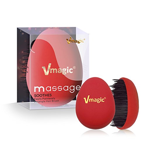 VMAGIC Egg Detangling Brush - glide the Detangler Brush through Tangled hair - Best Brush / Comb for Women, Girls, Men & Boys - Use in Wet and Dry Hair (Red)