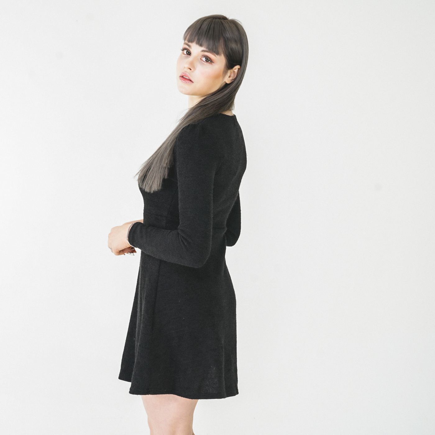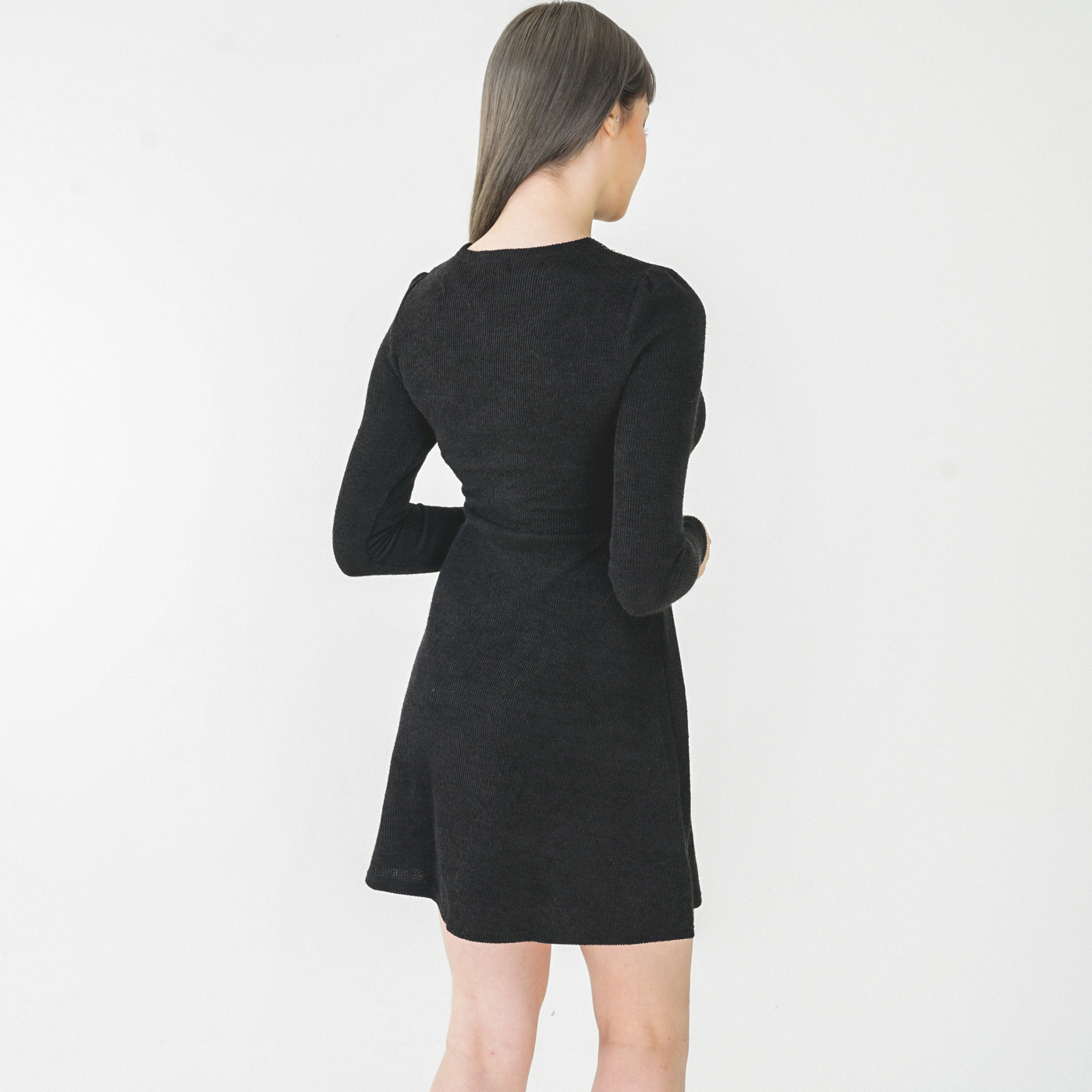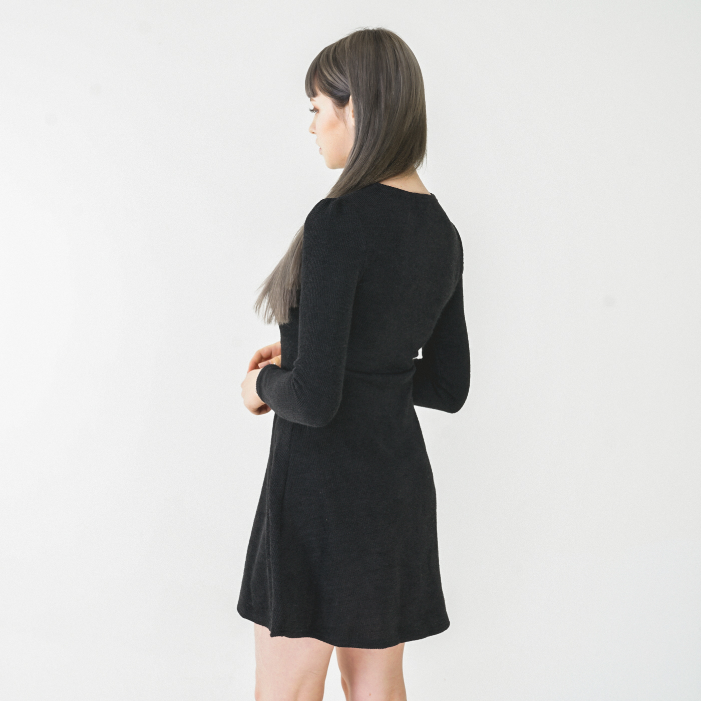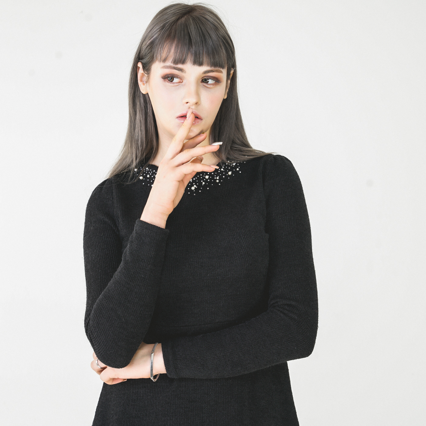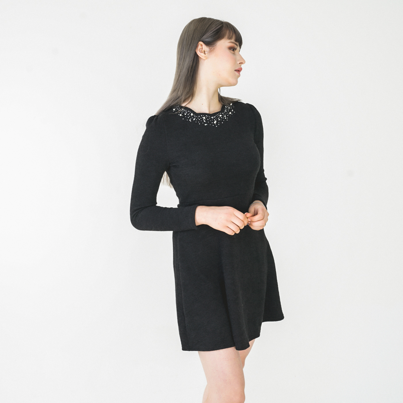 넥라인 디자인이 고급스런 니트질감의 우아한 원피스입니다.