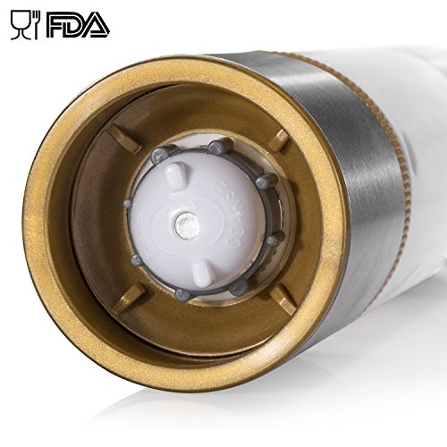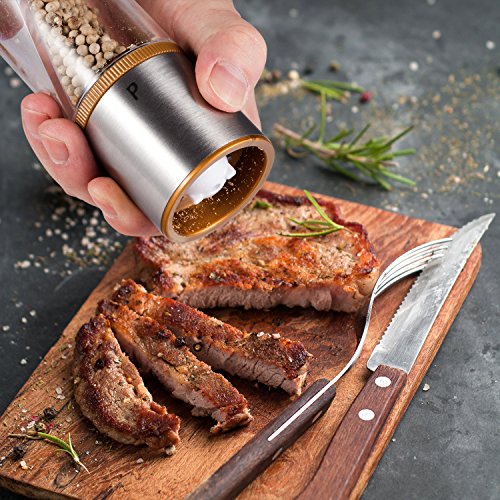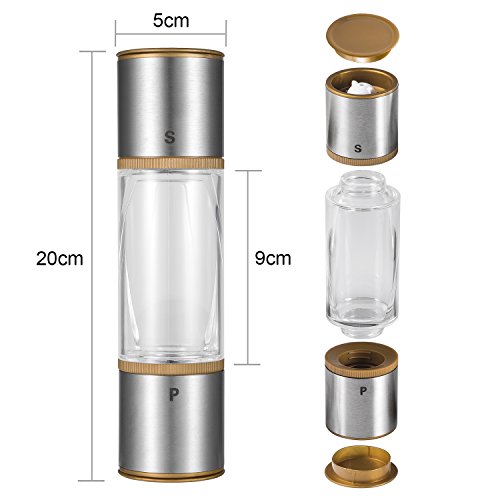 Product Description BRAND: ALISKID NAME : Salt Grinder and Pepper Grinder MATERIAL: Food grade high alumina ceramic grinding rotors Polishing Premium 304# Stainless Steel PMMA Durable Clear Acrylic Body DIMENSION: 20.5 CM * 5.3 CM * 5.3 CM( L*W*H) Net Weight: 300 g 0