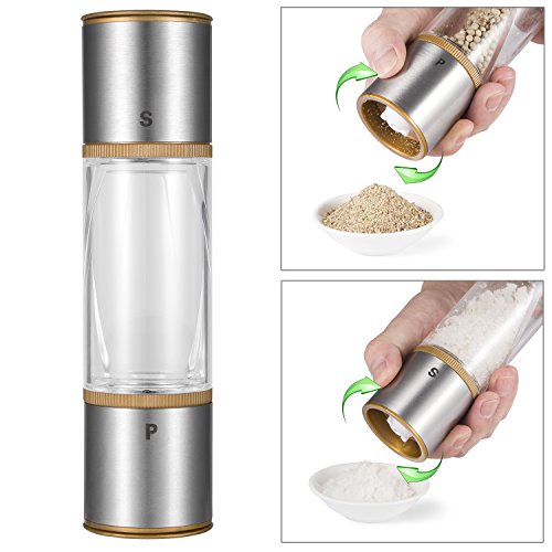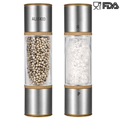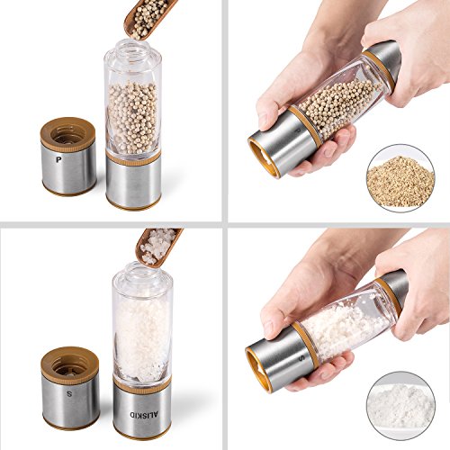 (ALISKID)/Kitchen Dining/Cook's Tools Gadgets/DIRECT FROM USA/Salt and Pepper Grinders Set 2-IN-1 , ALISKID 304# Premium Stainless Steel Double-ended Manual ...