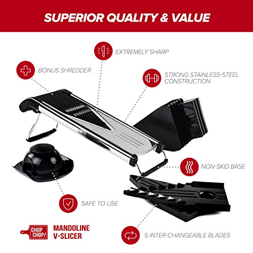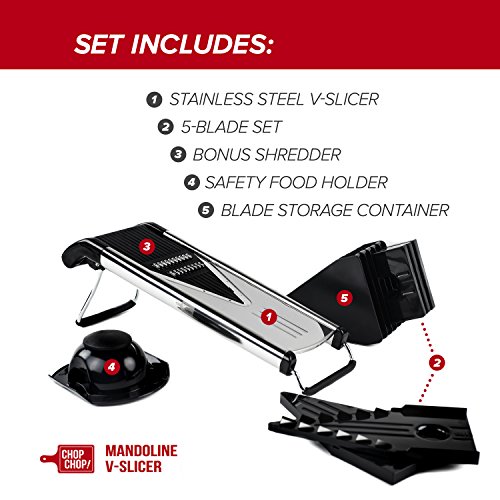 Chop Chop! Mandoline V-Slicer Commercial Grade Stainless Steel (6 Blade Set)