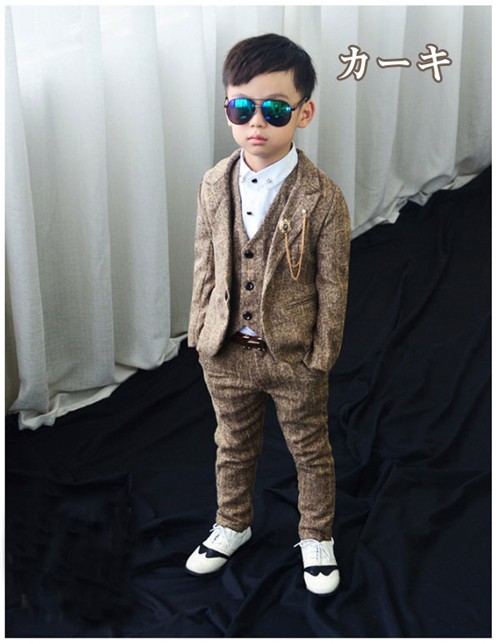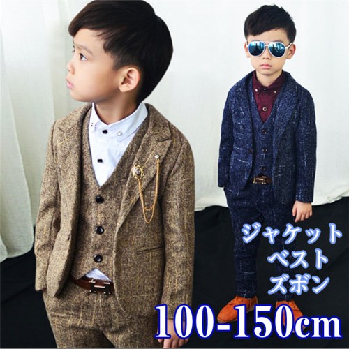 内容物:3点セット(ジャケット、ズボン、ベスト) 素材ポリエステル サイズ:100cm 着丈:39cm バスト:60cm ズボン丈:57cm ベスト丈:34cm (ベスト)バスト:58cm 110cm 着丈:42cm バスト: 64cm ズボン丈:61cm ベスト丈:36cm (ベスト)バスト:62cm 120cm 着丈:45cm バスト:68cm ズボン丈:65cm ベスト丈:38cm (ベスト)バスト:64cm 130cm 着丈:48cm バスト:70cm ズボン丈:69cm ベスト丈:40cm (ベスト)バスト:66cm 140cm 着丈:50cm バスト:72cm ズボン丈:73cm ベスト丈:42cm (ベスト)バスト:68cm150cm 着丈:53cm バスト:76cm ズボン丈:76cm ベスト丈:44cm (ベスト)バスト:70cm 縫製の状態や素材によりまして、若干の誤差がある場合がございます。あらかじめご了承ください。 ※色落ちや色移りすることがございますので、他のものとは分けて洗濯してください。
