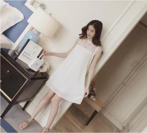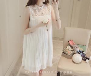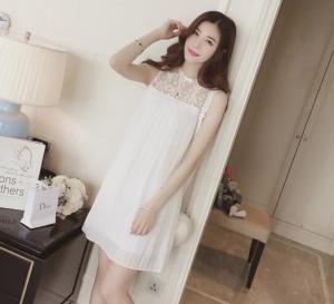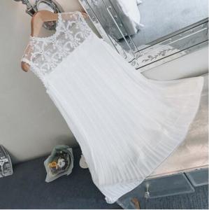 "シフォンワンピース プリーツ ミニワンピース フレアワンピース ノースリーブ レース 刺繍 春夏 上品 Aライン