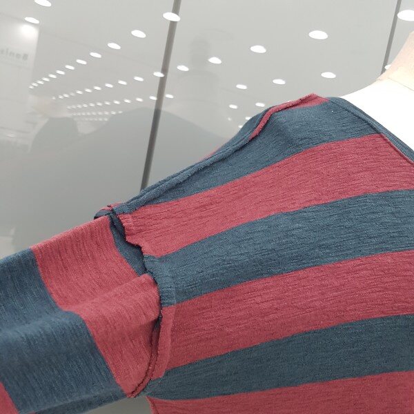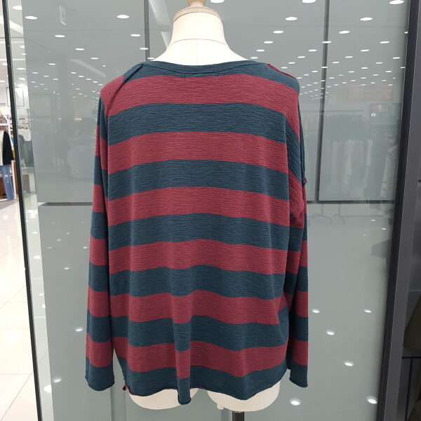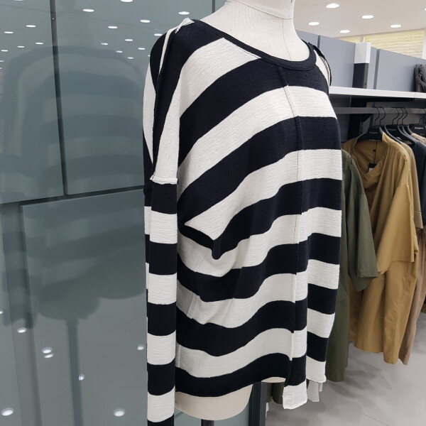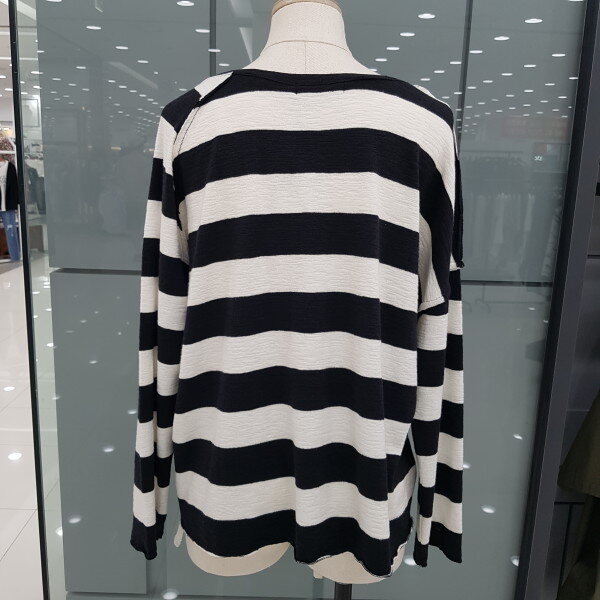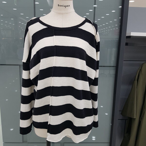 언발 스트라이프 티셔츠 입니다ㆍ신축성이 좋아 착용감이 편하면 루즈한스타일이 편해보이는 디자인 입니다