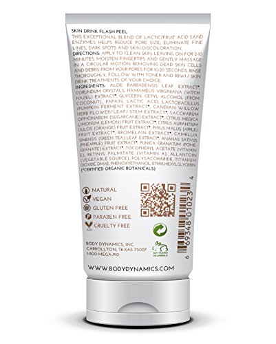 Studio : Body Dynamics Publisher : Body Dynamics Binding : Misc. Product Description Documentation by skin care professionals worldwide proves that peels dramatically improve and renew the skin to reveal a more radiant, toned and younger complexion. As teenagers we shed our skin every 28 days. At age 30 every 35 days, 40 every 40 days, and by age 50 every 45 days. This makes our skin look dull and tired. The Skin Drink Flash Peel is based on its unique combination of natural ingredients, which trigger the body's own natural reaction to exfoliate dead skin at a deeper level, and is also effective at stimulating natural collagen production while it builds skins elasticity for a fresh moistened look. This peel is designed to address mild to severe skin damage, elasticity, wrinkles, acne, and much more. Acne clients notice far less break outs and diminished scaring because it rids the skin of dead cells as well as it kills bacteria. This fabulous peel produces noticeable improvement in skin texture, tone and evenness in color with the very first treatment! After 3 or 4 treatments you will be thrilled with how gorgeous your skin looks and feels! As all of the other Skin Drink products, it is aloe vera based, contains lactic acid, fruit acids, and enzymes such as Papain, Pumpkin extract, sugarcane extract, Lemon fruit extract, green tea extract, apple extract, Bromelaine extract, and vitamin A. These ingredients combine to dissolve dead skin cells and sebum impacted in your pores. Skin Drink Flash Peel can be used weekly on a different day from the mask which is also used once per week. The following instructions for use may be followed, depending on your preference. 0