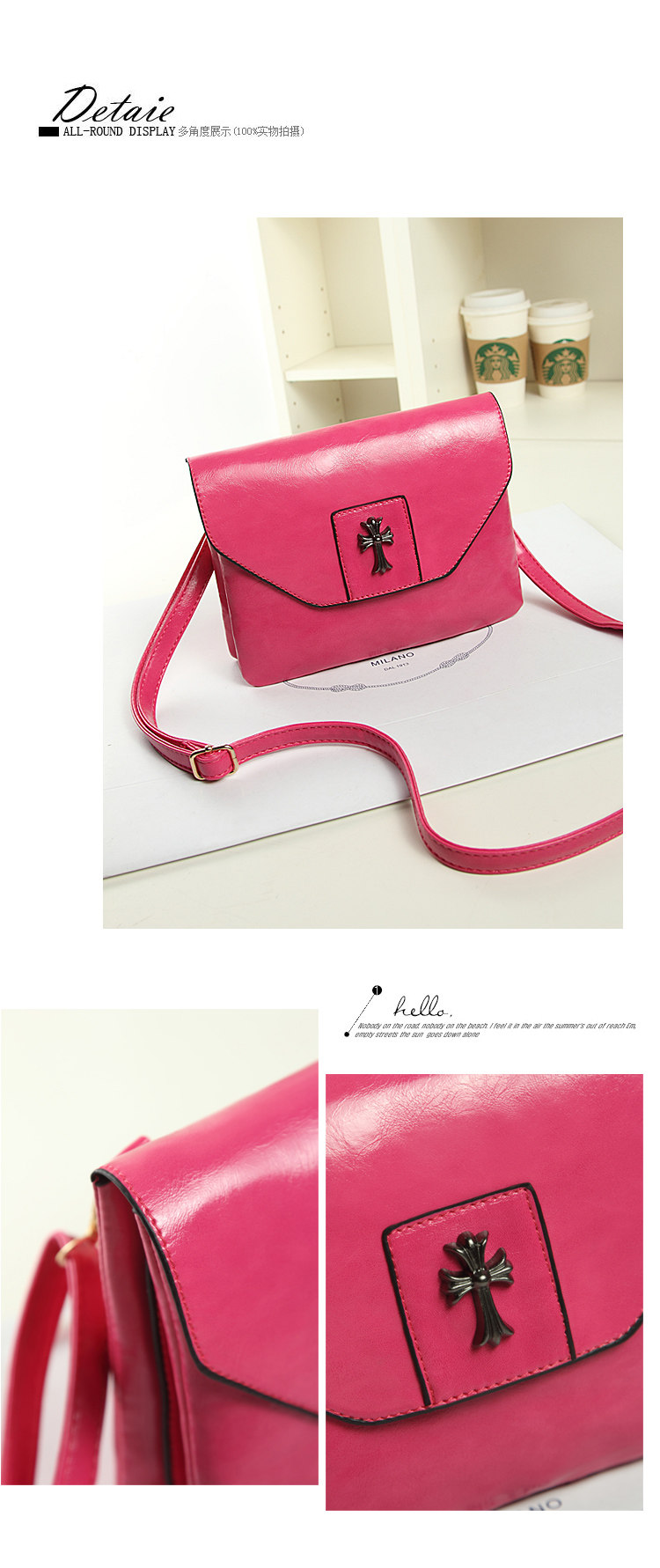 Bag dimensions: length 23cm, width 18cm, 5cm thick