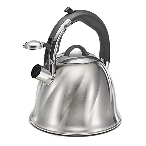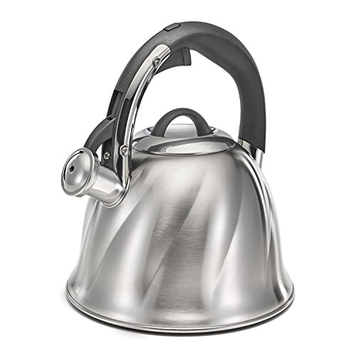 Whistle alert - Secure fitting stainless steel lid and easy-pull handle for filling and cleaning, Tea kettle whistles when water has boiled