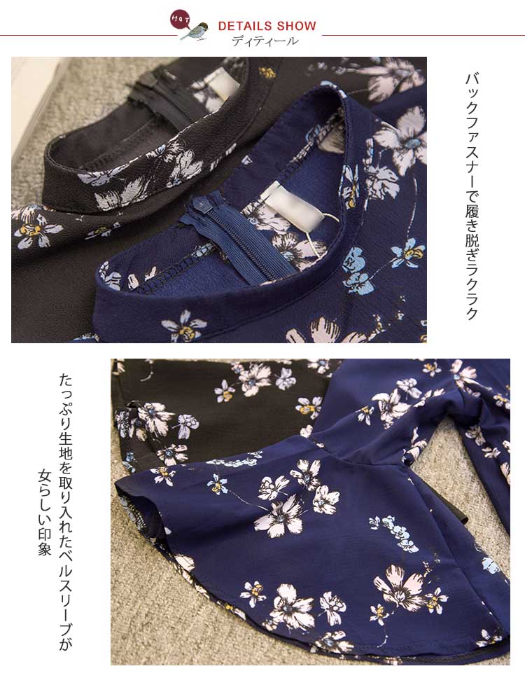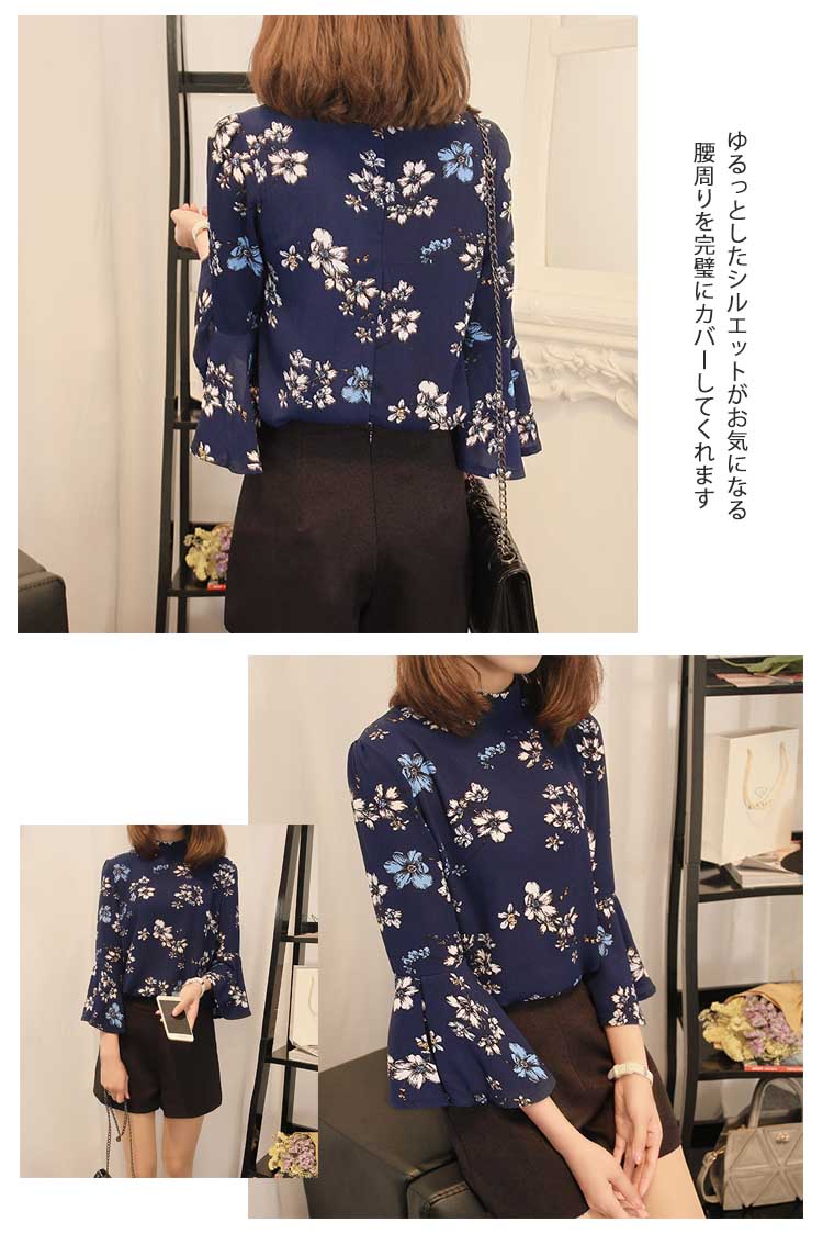 | 手元を優雅に演出してくるベルスリーブブラウスゆるっとしたシルエットがお気になる腰周りを完璧にカバーしてくれますエアリーなシフォン素材で、風通しよく、着心地抜群ショートパンツやスキニーなどいろんなアイテムとコーディネートできるから、着まわし力抜群 | |