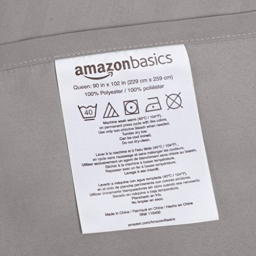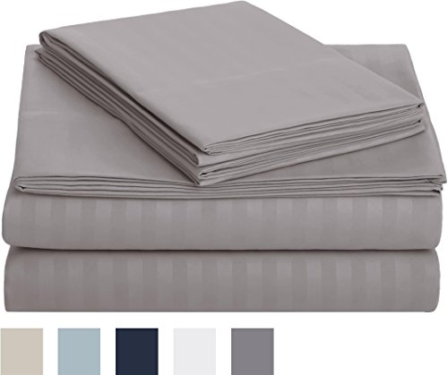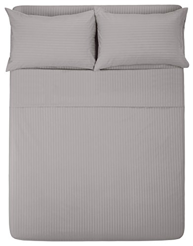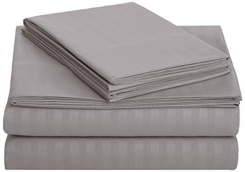 AmazonBasics Deluxe Microfiber Striped Sheet Set, Dark Grey, Queen