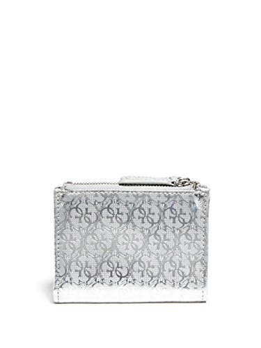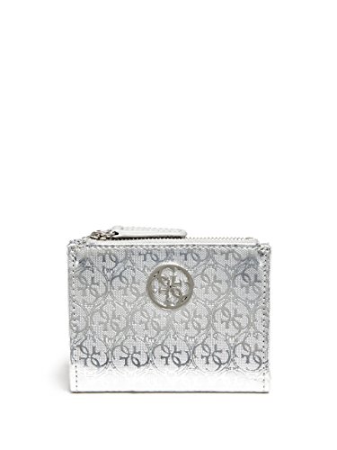 Feature : Textured faux-leather exterior. Pale gold-tone hardware. / Quattro G logo emblem. Top zipper closure. Snap button closure. / 5 credit card slots, 1 ID window and 1 bill slot / 4.75" W x 3.5" H