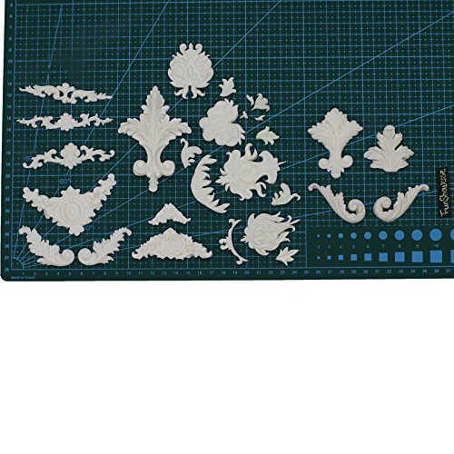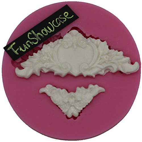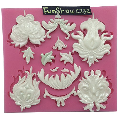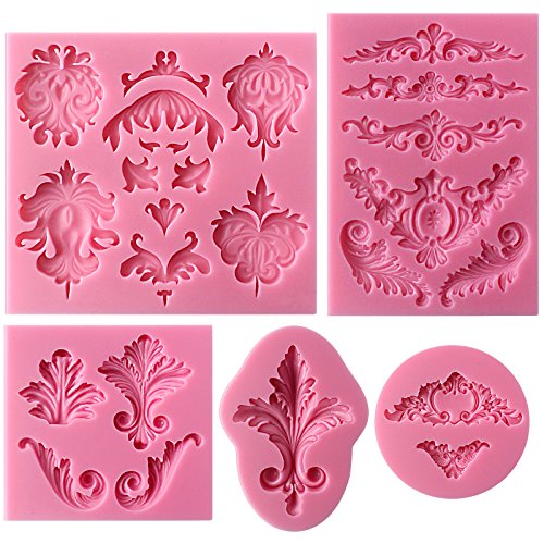 Funshowcase Baroque Style Curlicues Scroll Lace Fondant Silicone Mold for Sugarcraft, Cake Border Decoration, Cupcake Topper, Jewelry, Polymer Clay, Crafting Projects, 5 in Set