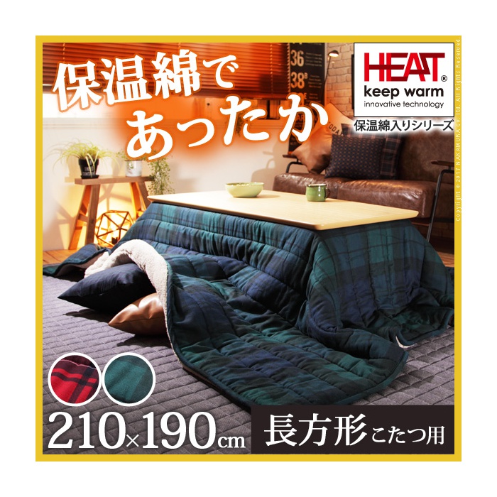 Rakuten 난로 이불 직사각형 중면-안솜 『보온면 들어감 난로 이불 체크 타입 〔heat 윈터 체크〕 210x190cm』 방오가공 체크 무늬 난로용 이불 발수 씻을 수 있 따스한