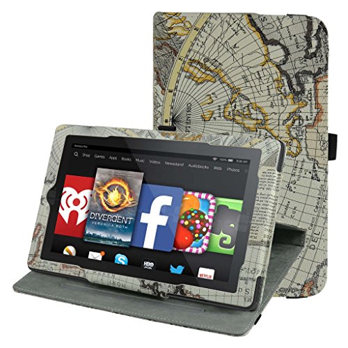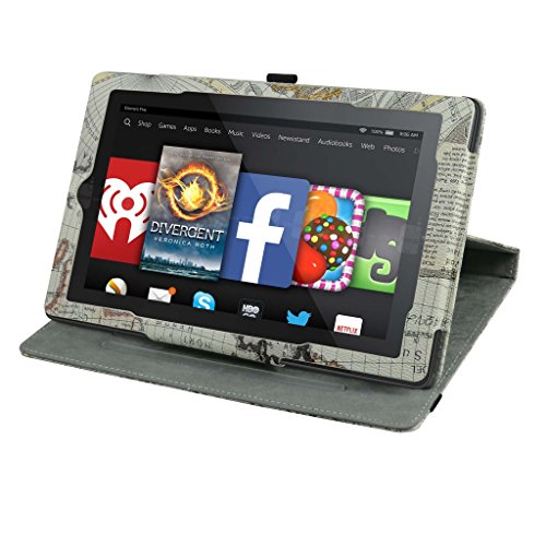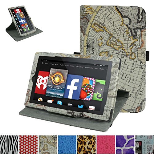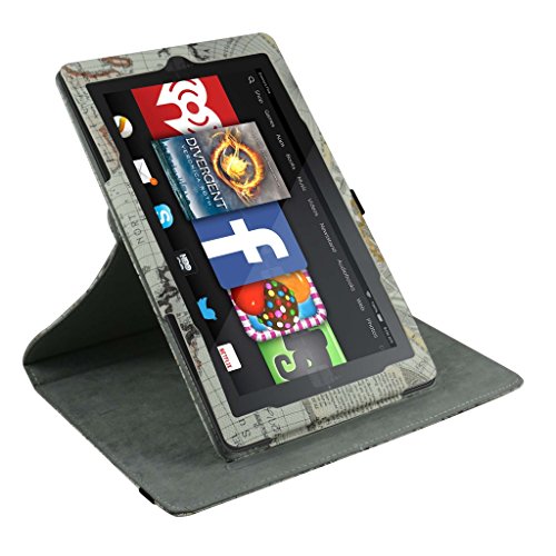 Fire 7 5th Generation Rotating Case,Mama Mouth 360 Degree Rotary Stand With Cute Lovely Pattern Cover For 7" Amazon Fire 7 Android Tablet 5th Generation 2015 release,Map White