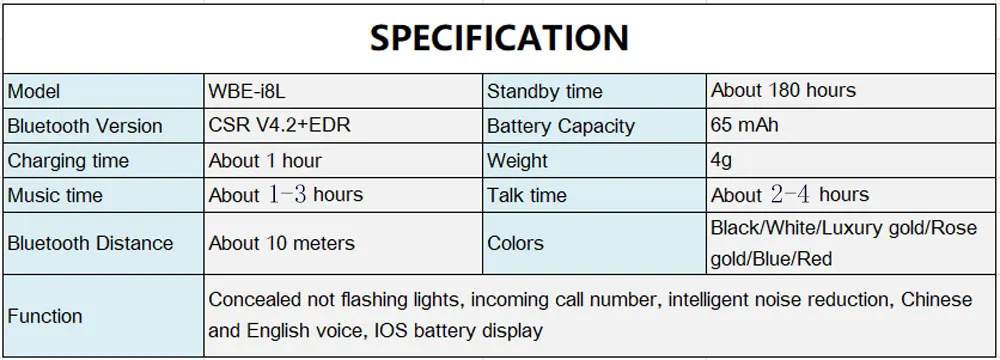 Earbuds Colors:Black,White,Luxury gold,Rose gold,Blue,Red