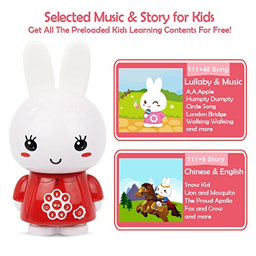 alilo Bright Ear Family -- Honey Bunny Story & Rhyme Player (Blutooth Bilingual Version) Features: Bilingual Updatable: One key switch between Pre-loaded Engilish and Chinese popular nursery rhymes and bedtime stories. All content are updatable with the built-in 8GB Micro SD card and included USB cable.