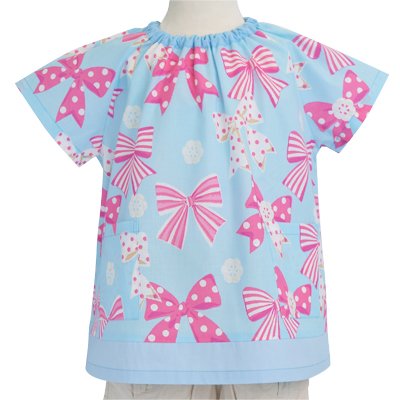 -. Title : わくわくKids半袖スモック アクアに揺れる大きなリボンコレクション(スケアー地) 日本製 N13422