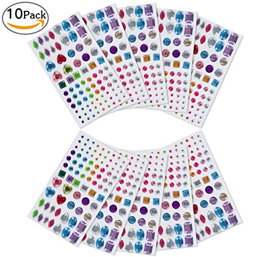 Self-adhesive Rhinestones Stickers Assorted Craft Jewels Multicolor Bling Gem Stickers 10 Crystal Rhinestone Sheets by fourHeart (Multicolor 01)