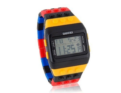 -. Title : Chic SHHORS W-8201 Rectangle Dial Green Light LED Watch with Multi-Function Display - Colorful