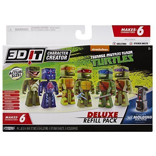 Make your own custom Teenage Mutant Ninja Turtles characters! Each basic refill pack can make 6 unique characters designed to work with the 3D Character Creator (sold separately). With a multitude of different wax colors, decals, and accessories the possibilities are as vast as your imagination, if you can dream it you can make it!