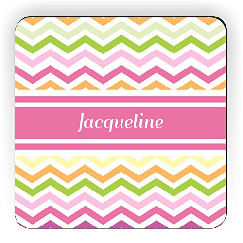 Rikki Knight "Jacqueline" Pink Chevron Name Design Square Fridge Magnet