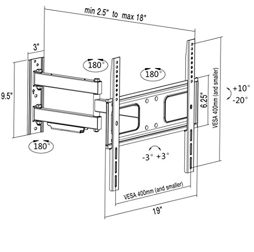 -. Binding : Electronics -. Brand : VIVO -. Color : Black -. EAN : 0641020645057 -. Feature : Fits Screens up to 55" in Size / Fits TVs with VESA Mount 400 x 400 (or smaller) / Full Motion, Fully Articulating TV Mount / Max Load Capacity of 110 lbs / Made of High Grade Steel -. Label : VIVO -. Manufacturer : VIVO -. Model : LYSB01012CXHE-ELECTRNCS -. MPN : MOUNT-VW02 -. PackageQuantity : 1 -. PartNumber : MOUNT-VW02 -. ProductGroup : Speakers -. ProductTypeName : AV_FURNITURE -. Publisher : VIVO -. Studio : VIVO -. Title : VIVO TV Wall Mount Fully Articulating VESA Stand for LCD LED Plasma Screen 32" to 55" (MOUNT-VW02) -. UPC : 641020645057