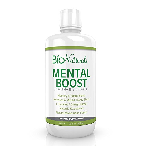 -. Title : Mental Boost Organic Liquid Supplement by Bio Naturals - Enhance Brain Performance with Increased Memory, Alertness, Clarity & Focus - Contains Ginkgo Biloba, Huperzine-A, DMAE & More - 32 fl oz