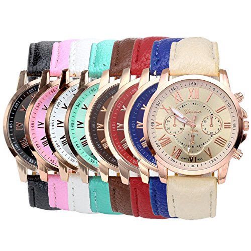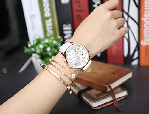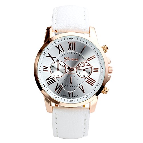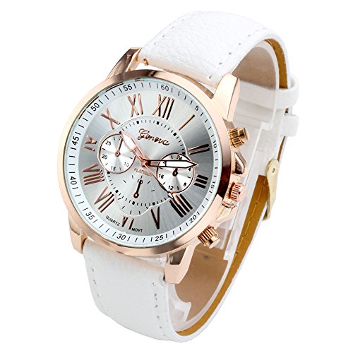 -. Title : Top Plaza Fashion Women's Analog Watch, PU Leather Band Rose Gold Tone - White