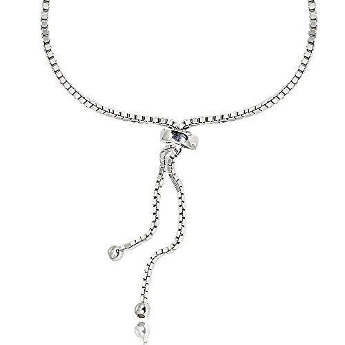 The bracelet is crafted of sterling silver and is nickel free. The adjustable box chain with two polished beads at its end attaches to both sides of the charm, creating a fashionable luxury look. This pull-string bracelet adjusts up to 10 inches long.